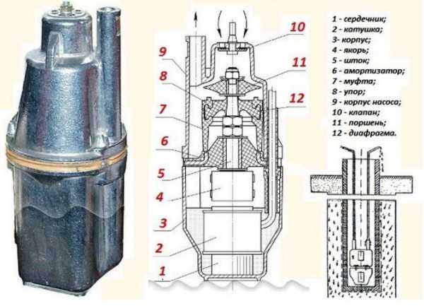 Схема вибрационного погружного насоса
