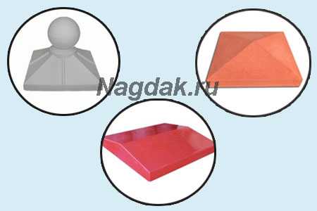 Источники: http://svoizabor.ru/stolby/kolpaki-na-stolby-dlya-zabora.html, http://idachi.ru/stroitelstvo-i-remont/zabory/kolpaki-na-stolby-dlya-zabora-iz-kirpicha.html, http://myfencing.ru/stolby/30-delaem-kolpaki-na-stolby-zabora.html