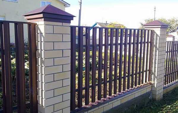 - к кирпичным столбам можно крепить практически любое полотно забора;