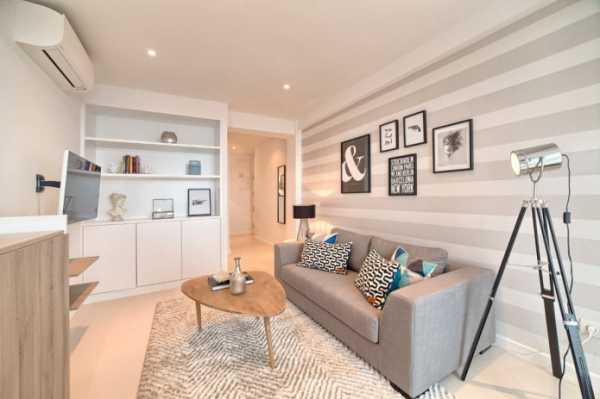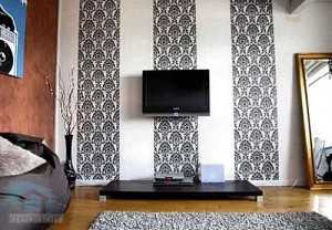 - Если Ваша комната имеет низкий потолок – наклейте обои в виде контрастных вертикальных полос светлого и темного цветов. Это позволит Вам значительно увеличить визуальную высоту стен.