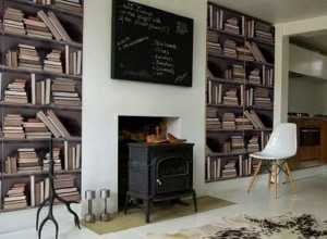 Для того, чтобы выделить какую-либо зону, например камин или телевизор используют фоновые обои. Часть стены может иметь однотонный цвет, отличающийся от основного оттенка или быть с необычным узором.
