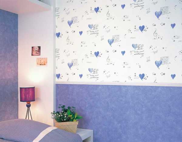 - комбинировать два вида обоев одного цвета, но разных оттенков стоит по принципу «светлый сверху».;