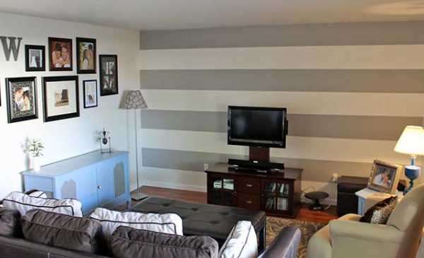 Горизонтальные узоры и полосы способны «раздвинуть» стены и сделать комнату шире. Подобный вариант отделки подойдет для помещений с высокими потолками, в компактной комнате может появиться ощущение низкого потолка.