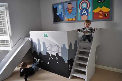 Мальчику же пригодится шведская стенка и место для других спортивных снарядов. Поэтому при дизайне комнаты нужно думать наперёд, заранее думая о предстоящих в будущем переделках и перестановках.