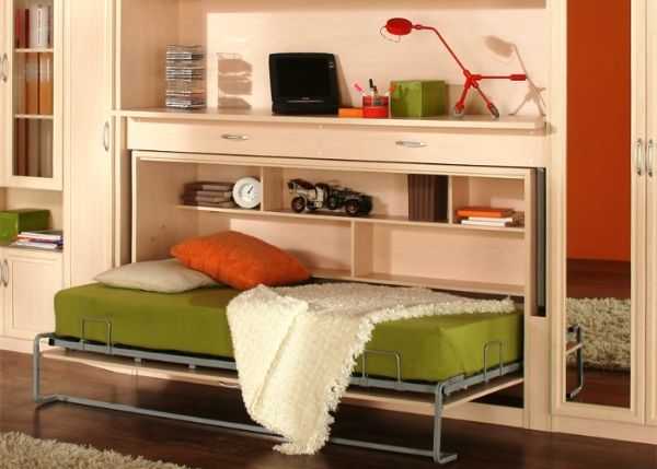 Если вам на глаза в магазине попадутся кровати с выкатными механизмами, не обделяйте их вниманием – они довольно удобные и компактные. То же самое касается откидывающихся элементов, когда кровать в собранном виде может располагаться на уровне одежного шкафа, а перед сном ее опускают в рабочее положение.