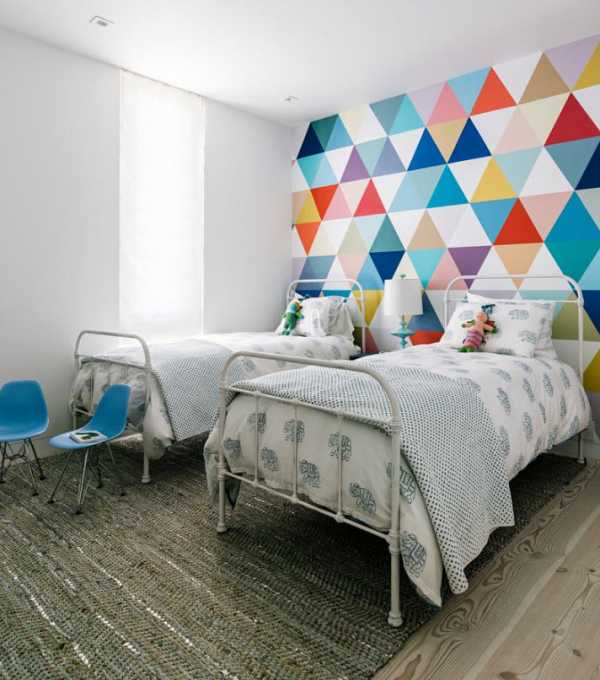 Можно сделать одну яркую стену, например, поклеить фотообои или разрисовать ее. В таком способе важно, чтобы яркой была именно только одна стена, иначе комната будет слишком пестрой. Больше про правила и идеи комбинирования обоев — смотрите в большом материале.