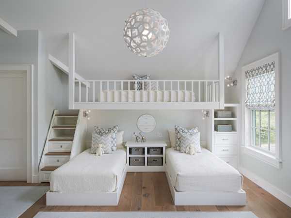 Идеальный дизайн спальни для двух девочек в белом цвете