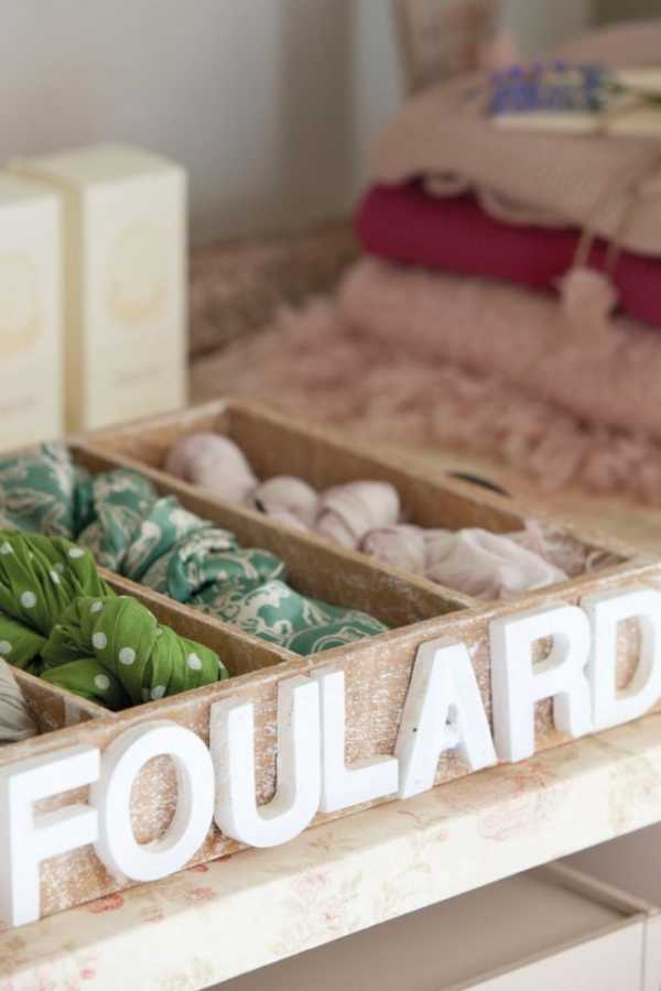 - Можно сделать красивые декоративные коробочки с разделителями для белья и носочков, также такой вариант подойдет и для шарфов.