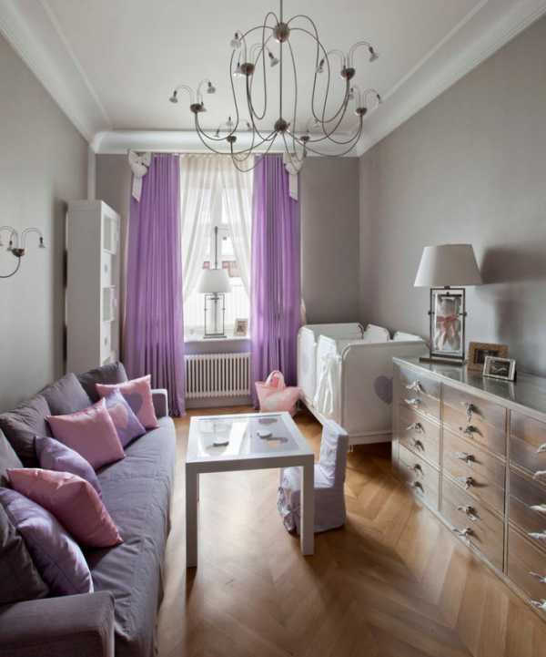 - Помогут расширить границы комнаты светлые оттенки стен и потолка, причем увеличивают размер помещения холодные тона, а также обои с мелким рисунком, зеркальные поверхности (для девочки постарше), легкие шторы на окнах.