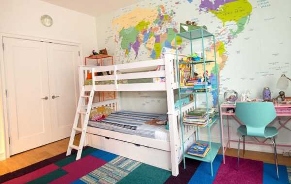 Если в семье один ребенок, то сделать дизайн куда проще. А вот как быть, когда в семье есть и мальчик, и девочка? Дизайн комнаты для двух школьников разнополых детей должен удовлетворять потребности каждого из них. В целях экономии пространство можно использовать двухэтажную кровать. К тому же в зависимости от возраста детей, нужно продумать и оформление. Дизайн детской комнаты для мальчика школьника и девочки можно увидеть на этом фото.