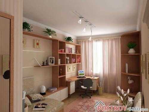 Стол может быть небольшого размера, стоящий у окна, или встроенный в специальную ярусную конструкцию, где кровать находится на втором ярусе, а под ней располагается стол и книжные полки или шкаф.