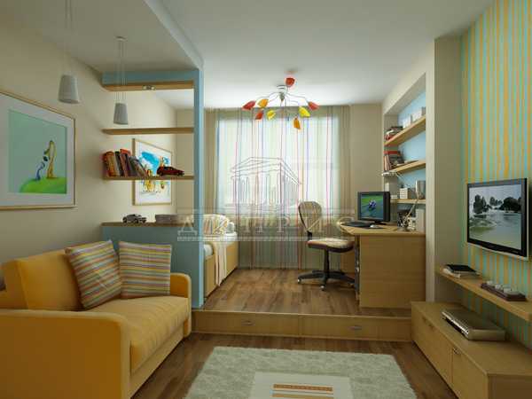 - зона для сна может быть объединена при помощи двухъярусной кровати;