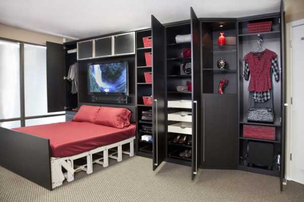 - зону хранения вещей можно оптимизировать, условно разделив один шкаф пополам;