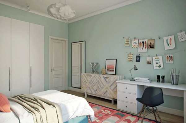 Комната подростка с зеленой стеной
