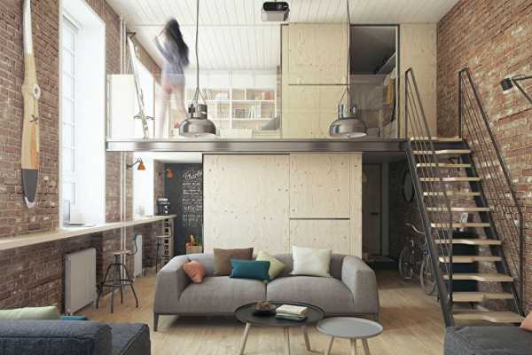Если в квартире высокие стены, этим нужно воспользоваться и поделить пространство на два уровня. Более эффектно выглядят этажи, нависающие над гостиной, к которым ведет компактная лестница. Плюс спальни на втором ярусе в том, что низкие потолки никак не помешают крепкому сну.