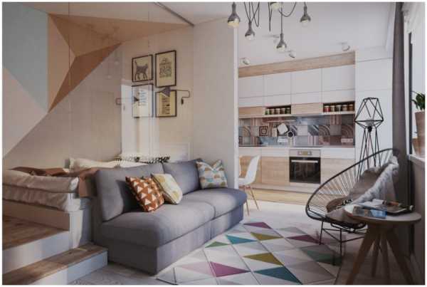 - Для одной комнаты, решая квартирный вопрос, использовать подиум, как метод зонирования. Над кроватью значительно приподнимите пол и доделайте туда ступеньки.