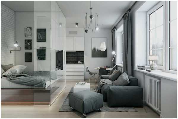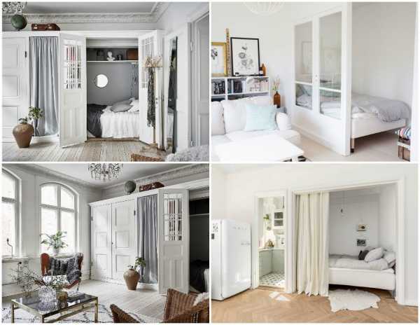 в классических цветах отделение спального места выдвижной ширмой разграничение зон шторками в серых тонах высокий стеллаж организация спального места вместо балкона в светлых тонах в зеленых тонах контрастные цвета кспальное место на пьедестале комбинирование обоев выдвижная кровать четкое разграничение зонmixfacts.ru