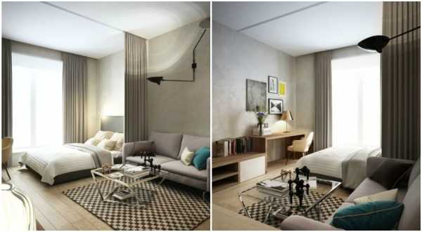 Рассмотрим простые варианты зонирования комнаты на спальню и гостиную, которые применимы даже в небольших комнатах.