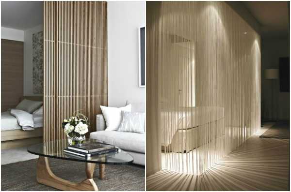 Мы уже упоминали об этом популярном виде перегородки, но рассмотрим его подробнее. Интерьер комнаты становится значительно интересней. Подобная перегородка стационарная, она не полностью отгораживает территорию в комнате, очень функциональна и востребована, потому популярна.