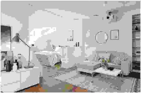Белый цвет зрительно увеличивает пространство.Ввиду отсутствия большого пространства, мебель предпочтительно выбрать или встроенную или раскладную. Как вариант, кровать может прятаться в нише стены и доставаться оттуда при необходимости.