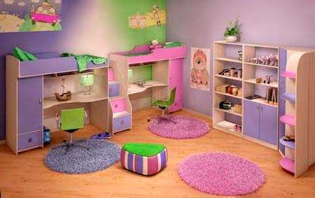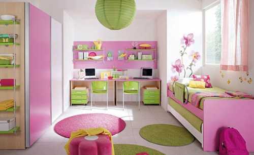 Желательно, чтобы комната получилась нежной, воспитывающей хороший вкус у сестер, но при этом функциональной. Должно быть предусмотрено достаточное количество элементов мебели для хранения вещей (которых у девочек, как правило, много), разнообразных ящичков для девичьих принадлежностей и мелочей.