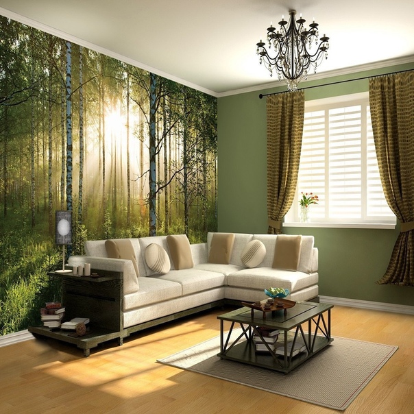 Совет! Людям, страдающим бессонницей, специалисты школ фен-шуй рекомендуют использовать фотообои с насыщенными зелеными тонами. Отличным вариантом будет изображение соснового бора.