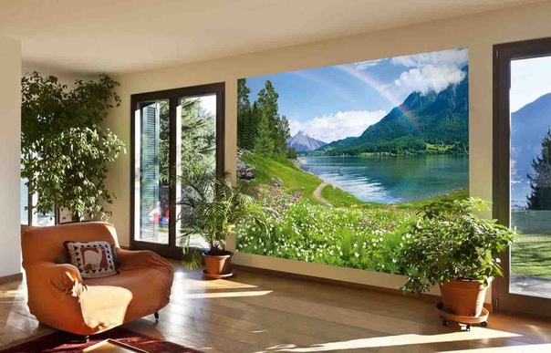 - чтобы фотообои не затерялись среди прочих обоев и мебели, они должны быть немного выразительнее и ярче