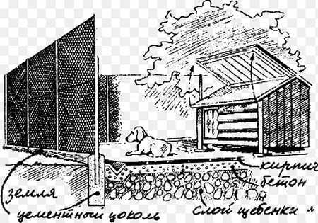 Обычно делают бетонное напольное покрытие, а на зиму поверх делают деревянный настил, чтобы собака не получила ревматизм лап.