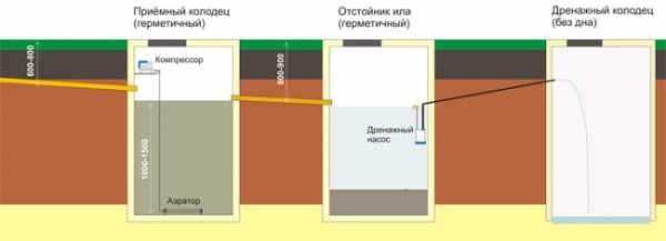 Но даже в случае, если эти трубы имеются, то логично вытекает другая проблема. Ведь, при работе аэратора, стоки отстояться не смогут. Все содержимое в резервуаре будет подвергаться постоянному перемешиванию, образуя все новые пузырьки выходящие со дна. Если такая смесь попадет в перелив или фильтрующий колодец, то быстрое заиливание грунта будет обеспечено в короткие сроки.