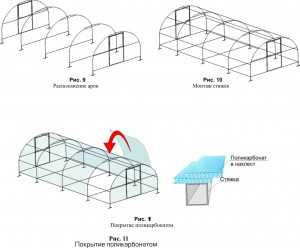 В продаже имеются комплекты для сборки самых простейших конструкций в форме арки либо домиков. Перед тем, как начать строительство, следует рассчитать размеры будущего строения и выбрать соответствующие чертежи. Конечно же, под любое сооружение на грунте следует уложить фундамент.