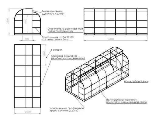 Конструкции теплиц из поликарбоната: размеры и фото формы
