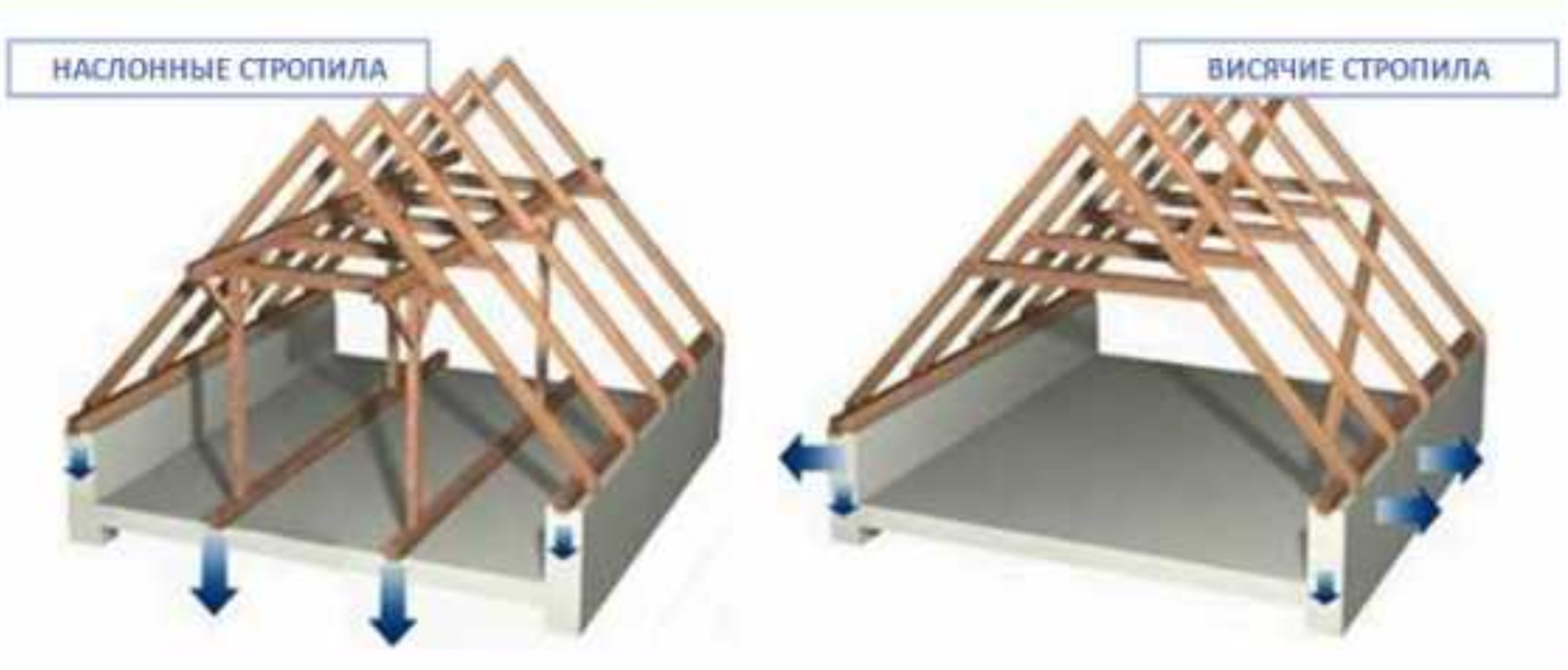 Стропильная система может иметь наклонную или висячую конструкцию.