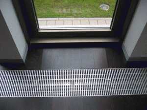 Современные тенденции дизайна требуют, чтобы в интерьере не было ничего лишнего – это и послужило главной причиной создания встраиваемой отопительной техники. Внутрипольные водяные конвекторы отопления монтируют в пол. Видимая часть прибора – декоративная решетка, установленная вровень с напольным покрытием. Съемные решетки изготавливают из стали, алюминия и дерева – выбор зависит от финишного покрытия пола.