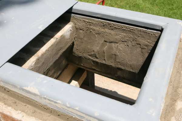 Внешние стенки выкладываются из бетонных блоков, а изнутри обкладываются шамотным кирпичом, который отличается устойчивостью к высоким температурам.
