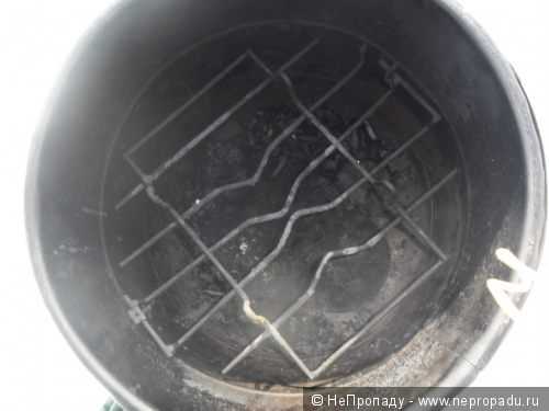 Для изготовления такой мини-коптильни применяют старые ведра из стали. В ведро устанавливают две сетки, изготовленные из нержавейки. Первую размещают на расстоянии в десять сантиметров от дна, а вторую через пять сантиметров после первой.