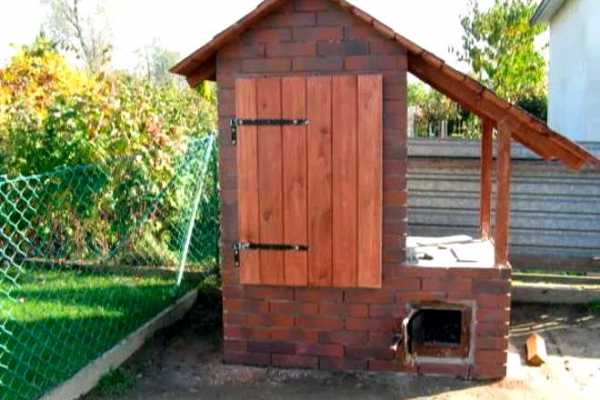 Сооружая строение из кирпича, мы можем реализовать оба варианта — для горячего и холодного копчения, но для этого обязательно потребуется фундамент с каналом дымохода. Деревянное строение небольших размеров не потребует прочного фундамента, более того, оно может быть переносным, так же как и коптильня из металлической бочки. Это актуально для дачных участков, которые на холодное время остаются без присмотра — видимые части коптильни вы просто убираете, а топочная камера, углубленная в основание из грунта, не привлечет нездорового внимания.