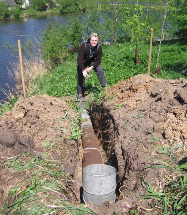 - По траншее прокладывается асбестовая труба с выходом в котлован. Затем вся канава засыпается землей и притаптывается.