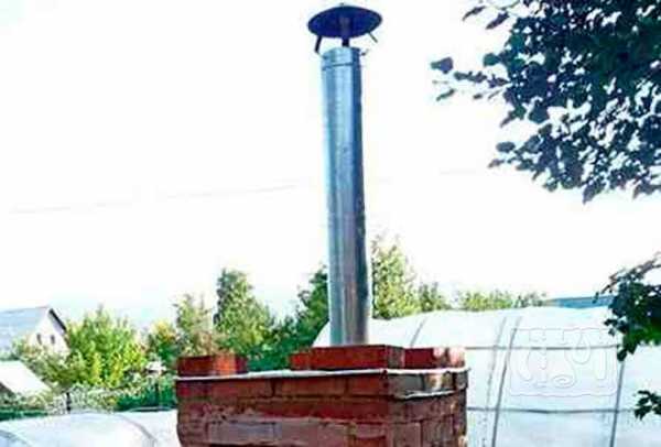 Несмотря на то, что многие используют металлические дымоходы, потому что они дешевле, лучше всего построить этот элемент из кирпича. Чтоб защитить продукты от осадков, установите над трубой колпак из металла.