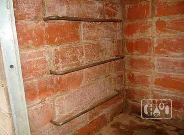 - Кладка 23 ряда предусматривает установку двух штырей и металлических полосок, на которые будут подвешиваться продукты.