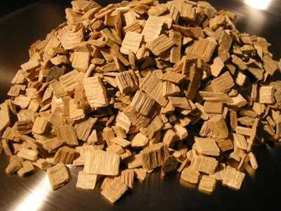 - Насыпать щепу на дно коптильни.