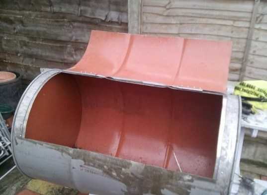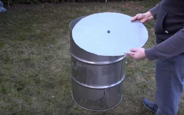 - Если у бочки нет крышки, то сделать ее из листового железа.