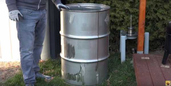 Для изготовления коптильни нужна достаточно вместительная бочка. Оптимальный объем – 200 л. Емкость должна быть металлической и жаропрочной, особенно при использовании для горячего копчения. Лучше найти бочку из нержавеющей стали. Если она покрыта краской или другим составом, то необходимо это покрытие удалить.