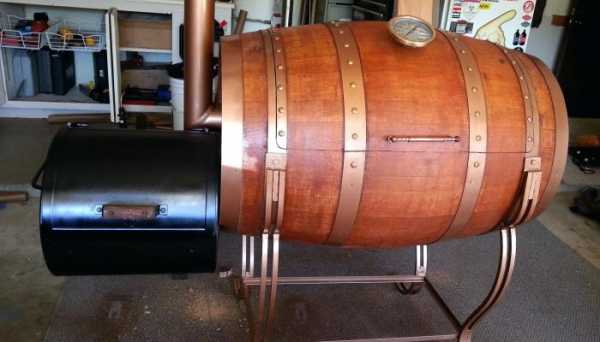 Чем хороша коптильня из металлической или дубовой бочки на 200 л?