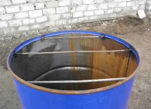 Использовать бочки от топлива нежелательно. Если другого варианта нет, то емкость надо тщательно промыть и выдержать на огне, чтобы сгорели остатки горючего.