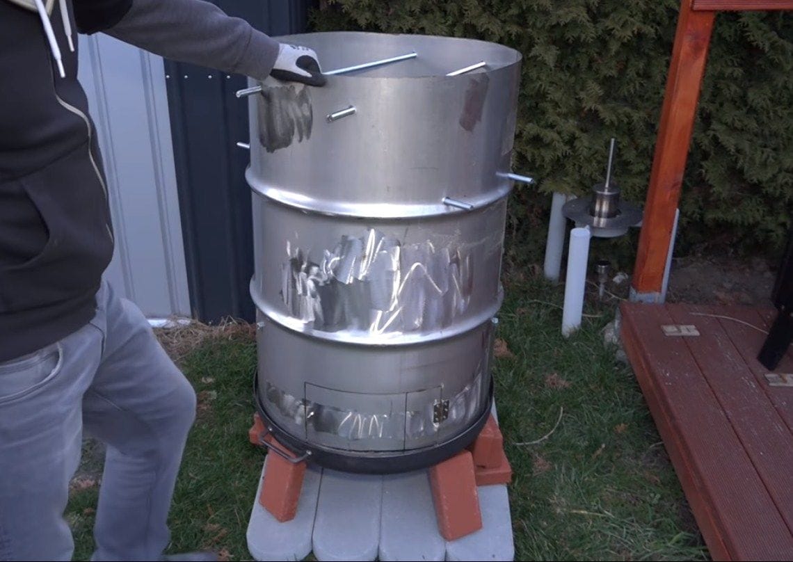Сверху бочку можно закрывать перфорированной деревянной крышкой или же джутовой тканью. Главное, чтобы крышка не закупоривала коптильню, потому что дым должен иметь возможность выходить наружу.