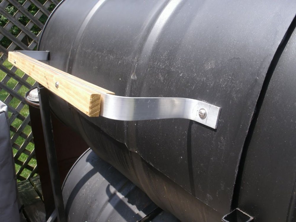 Для удобства копчения нужно соорудить специальный поддон, в который будет стекать вытопившийся жир и сок. Поддон не должен полностью перекрывать бочку, поэтому его диаметр должен быть примерно на 6-10 см меньше диаметра бочки. Устанавливать его можно на вваренные в бочку крест-накрест куски арматуры. В этом случае дым будет беспрепятственно циркулировать по бочке, жир и сок будут капать не в топку и дымоход, а в поддон, при этом поддон можно будет легко достать и очистить.