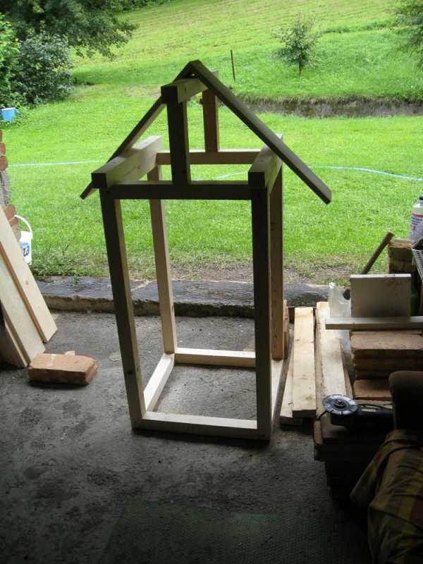 • Крышу делают одно или двускатной. На переднюю часть закрепляют дверь так, чтобы она прилегала плотно и легко открывалась. Избежать самопроизвольного открывания поможет задвижка.