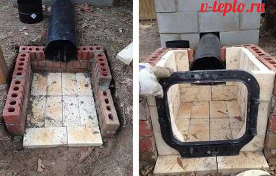 5. Выкладывают топочную камеру. Для этого берут огнеупорный кирпич, из которого складывают стенки топки и ее верхнюю часть.
