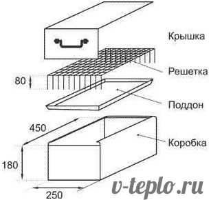 - Схема переносной коптильни в виде ящика