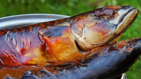 Рыба готовится в такой коптильне около часа. Температура устанавливается около 70 градусов, а потом поднимается до ста.